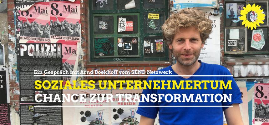 Arnd Boekhoff ist Sprecher der Regionalgruppe Hamburg des Social Entrepreneurship Netzwerks Deutschland (SEND). Die Initiative für SozialunternehmerInnen und soziale Startups, die sich 2017 gegründet hat, möchte mit ihrem Einsatz für soziale Innovationen einen entscheidenden Beitrag dazu leisten, das Zusammenwirken von Unternehmen und Gesellschaft neu zu denken.